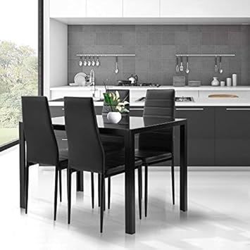 Black Dining Table And Chairs Set Of 4 Glass Kitchen Table And 4 Faux Leather Padded Chairs Kitchen Dining Table Set Amazon Co Uk Kitchen Home from images-na.ssl-images-amazon.com Charthouse rectangular dining table and 6 upholstered side chairs. Browse selection of modern dining tables and chairs, perfect for your kitchen, dining room or patio, in a range of colours and styles, always at attractive sets made out of faux concrete or rattan can be used outdoor , since they are characterized by weather resistance. About 25% of these are dining tables, 16% are dining room sets, and 2% are outdoor tables. Find great deals on ebay for dining room table chairs. Dining table & chair sets. Traditional black finish dining room set 7 pieces rectangular table chairs icb0. Explore our dining chairs, bar stools, wine racks & credenzas here! Black rattan dining chairs, set of 4 on onekingslane.com.